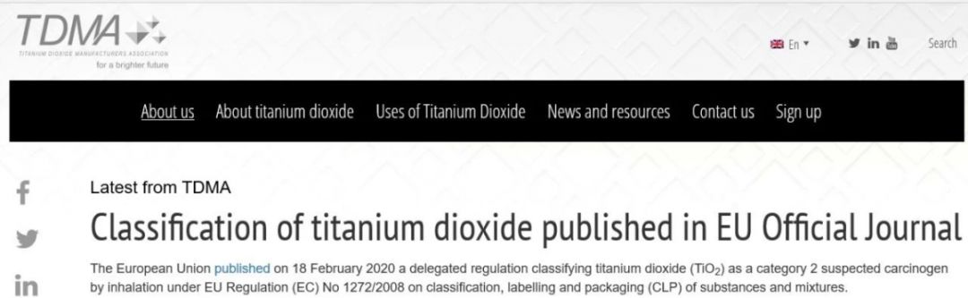 大事件!歐盟正式宣布鈦白粉為疑似致癌物